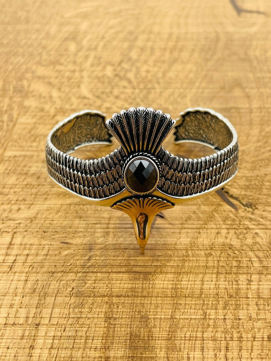Erheben Sie Ihren Stil mit diesem atemberaubenden verstellbaren Silberarmband für Männer mit Adlerdesign. Handgefertigt mit Präzision, verfügt dieses Armreif über ein filigranes Tierdesign und einen auffälligen schwarzen Zirkonstein, was es zu einem bemerkenswerten Schmuckstück macht.