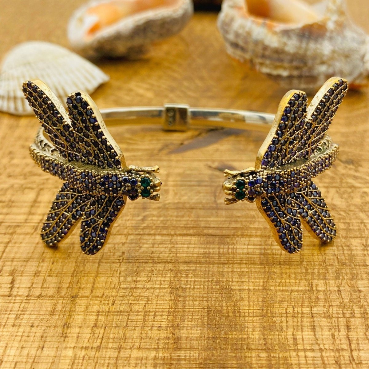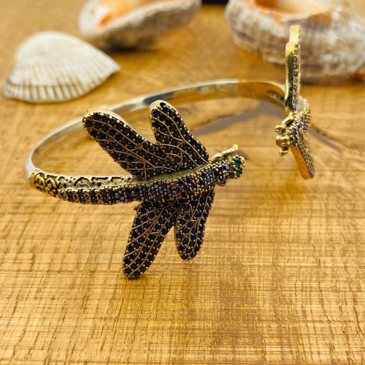 Handgefertigter Türkischer SchmuckDieses atemberaubende Amethyststein-Armband mit einer Schmetterlingsfigur ist aus 925er Sterlingsilber gefertigt und perfekt zum Verschenken an sie.