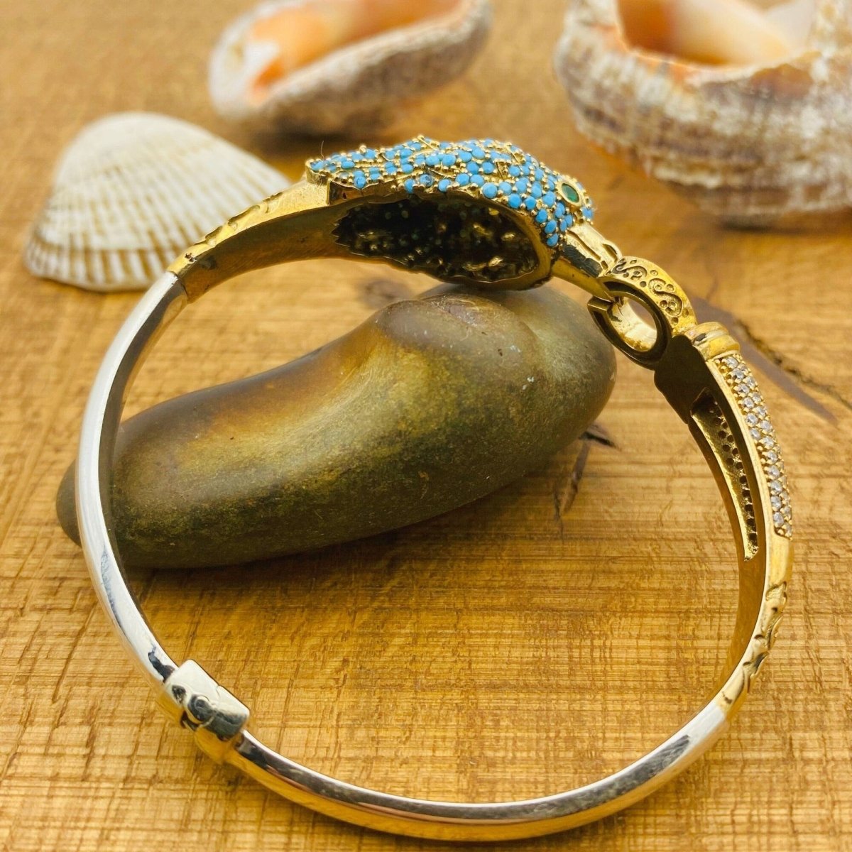 Handgefertigter Türkischer SchmuckDieses 925er Sterlingsilber Armband verfügt über einen lebhaften Türkisstein und ein mutiges Tigerdesign. Perfekt für diejenigen, die tierisch inspirierte Schmuckstücke lieben, ist dies ein großartiges Geschenk für sie.