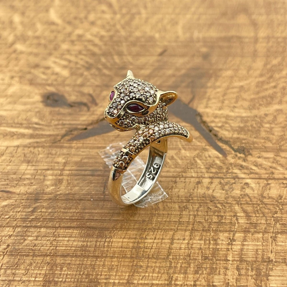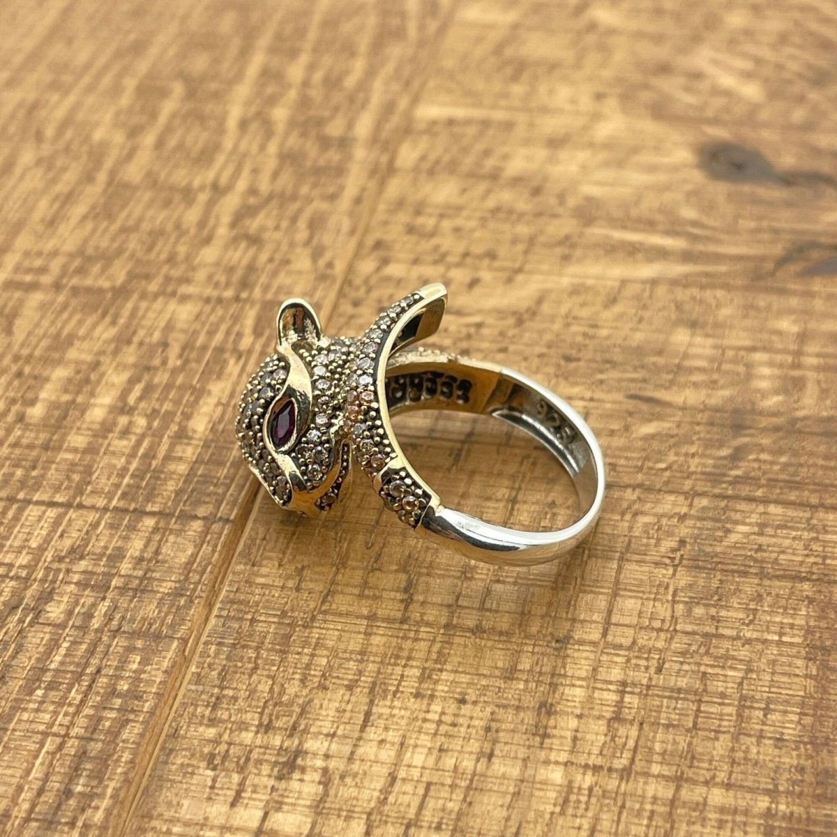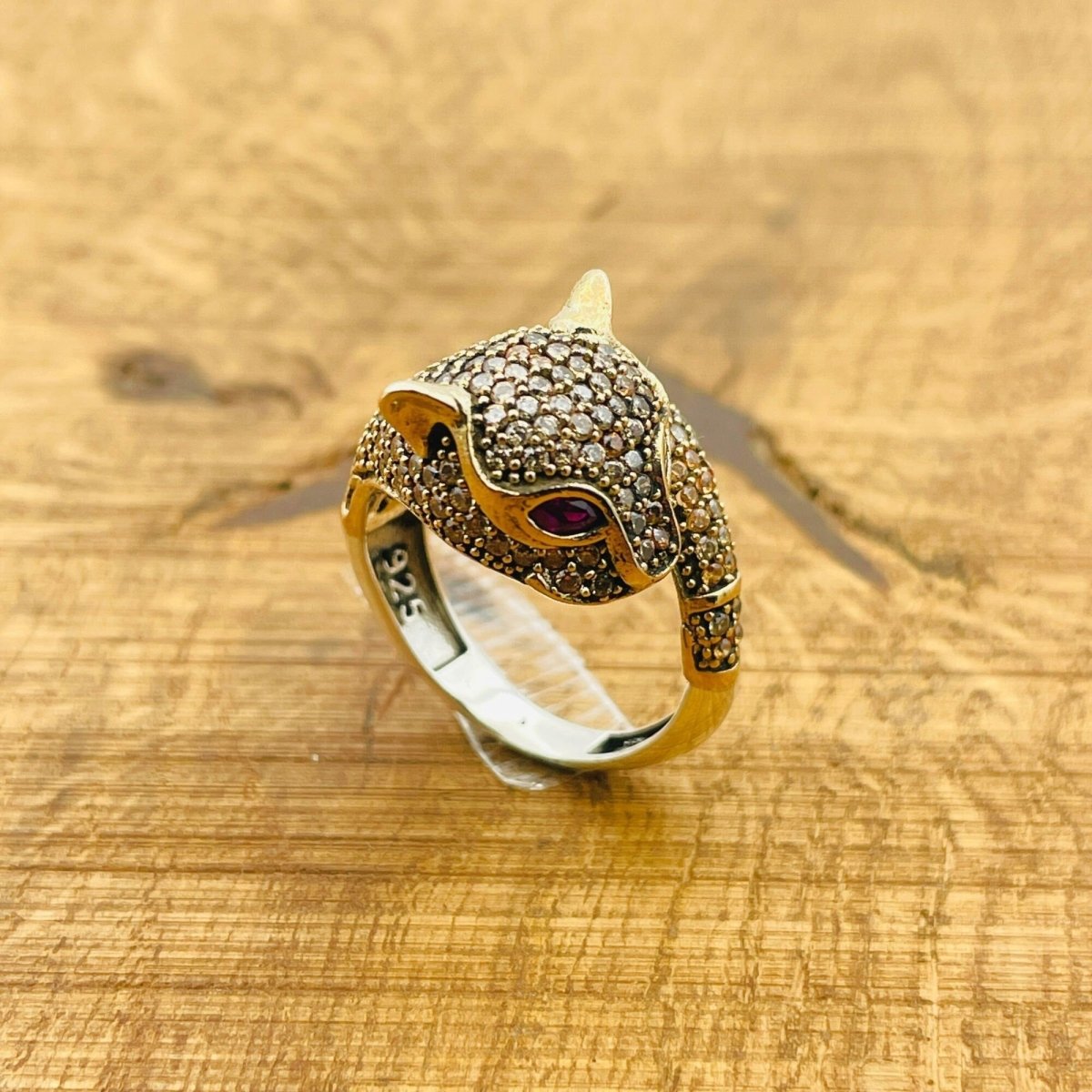 - Striking Citrine Stone: Features a vibrant yellow citrine stone with a bold tiger head design.