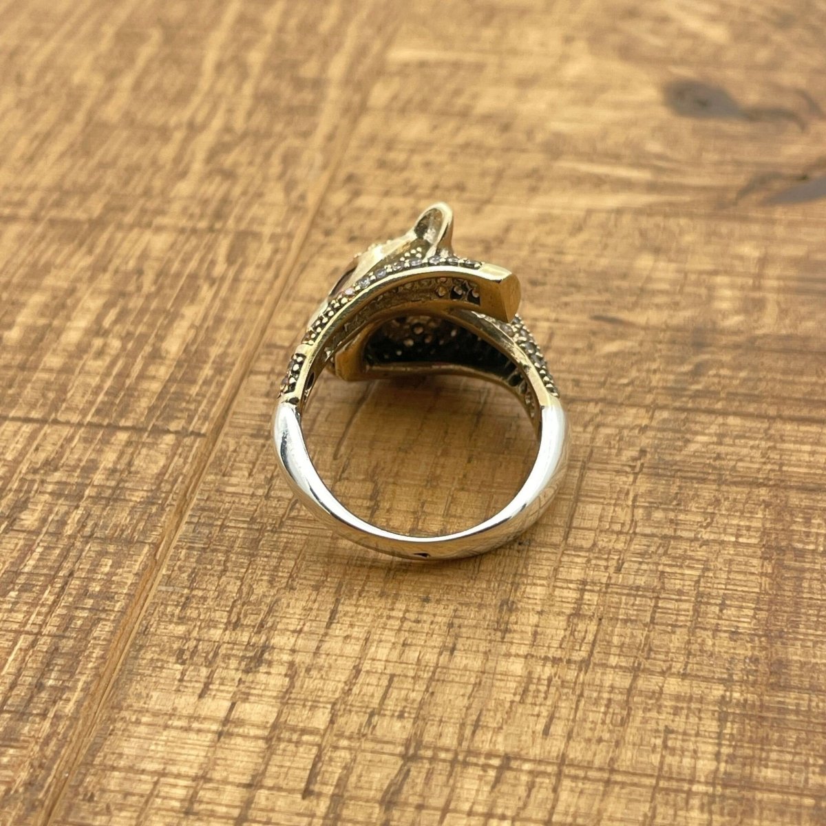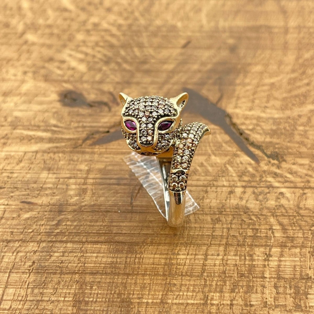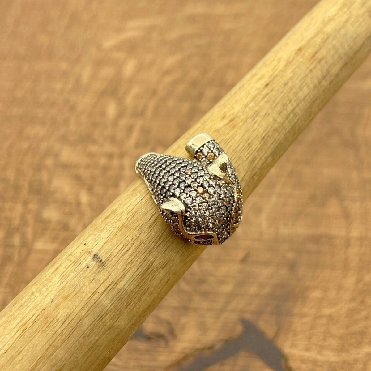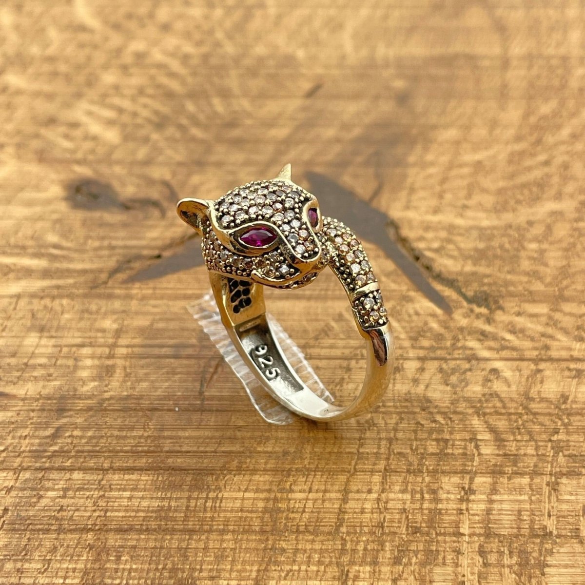 - Striking Citrine Stone: Features a vibrant yellow citrine stone with a bold tiger head design.