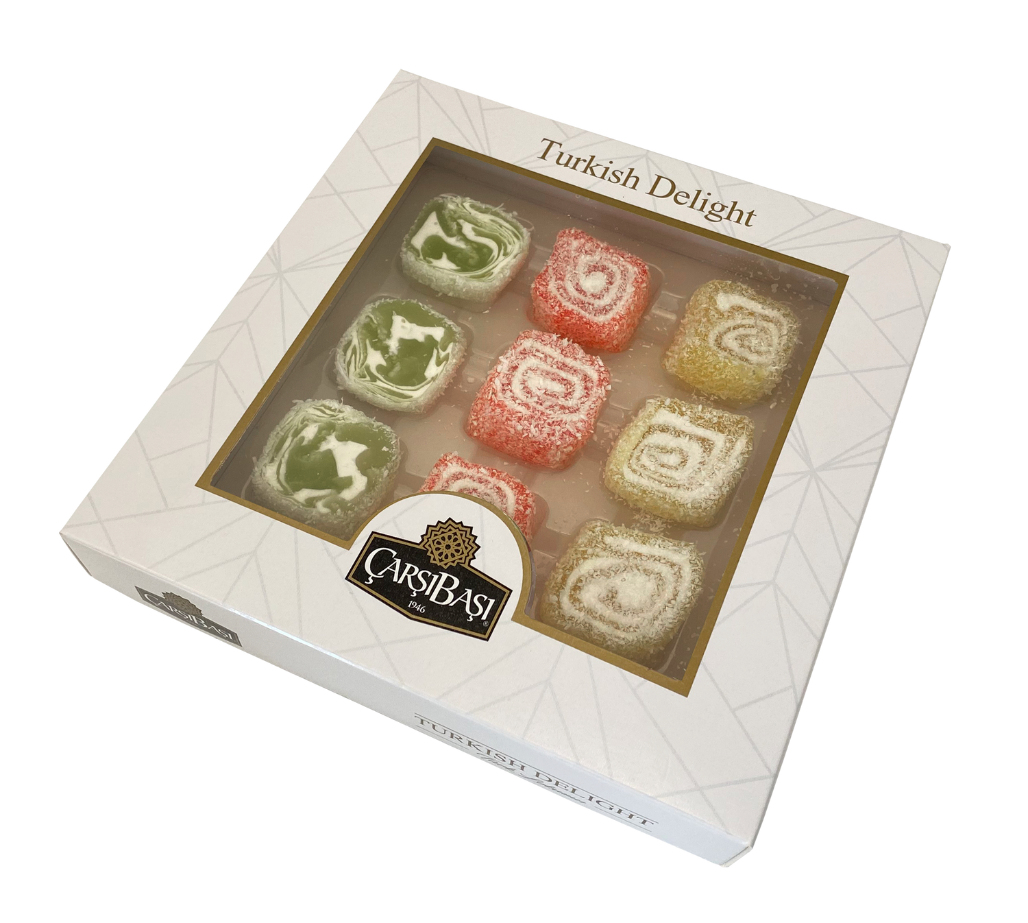 Offer a vibrant, modern twist on a classic confection. This 300g Carsibasi window box features 9 pieces of beautiful, cream-filled 'Sarma' (rolled) Turkish Delight, bursting with assorted fruit flavors.