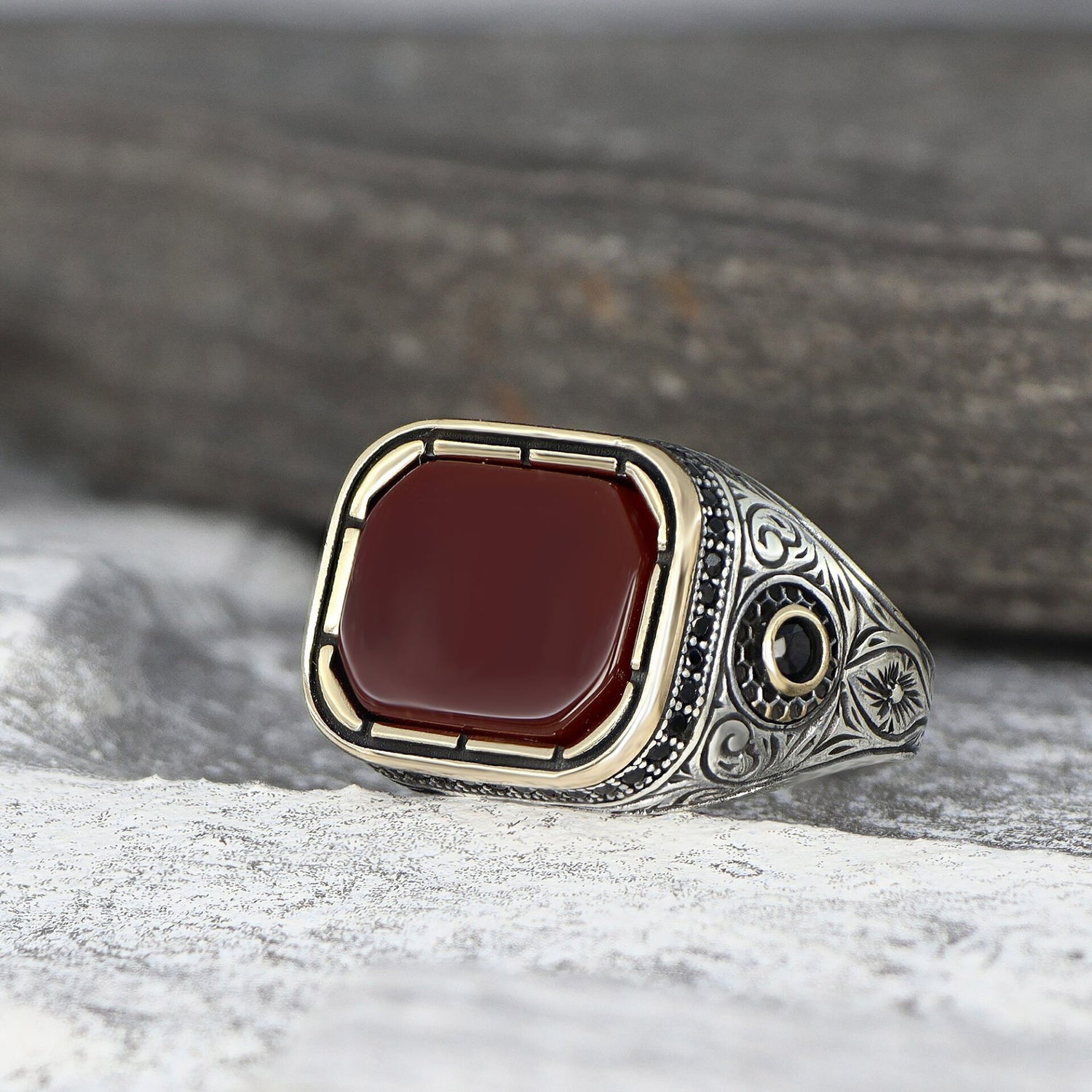 Tesbihevim | Men's Silver Ring with Agate Stone - TryAladdin