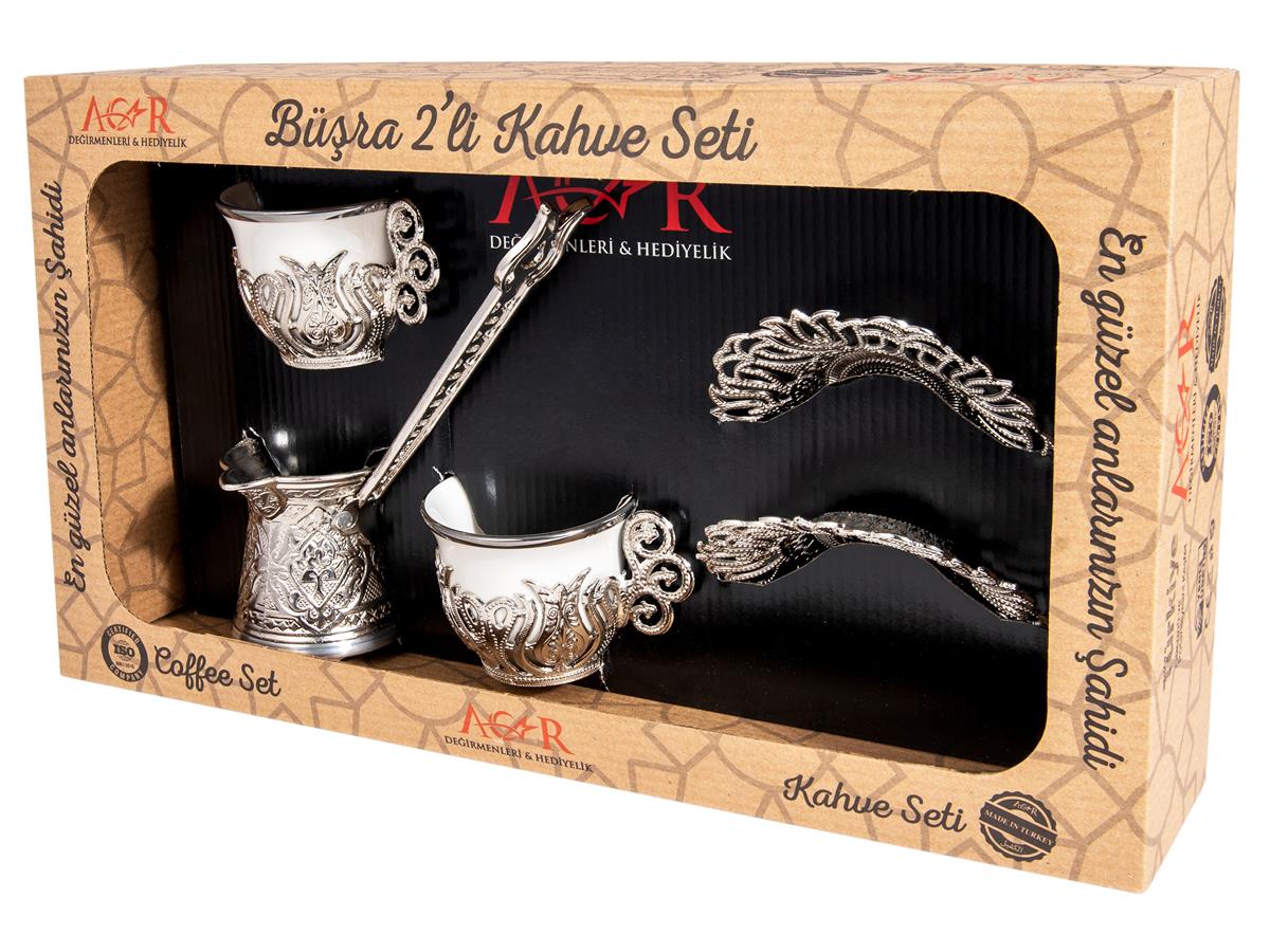Türkisches Kaffeegeschirr Set aus zwei + Kaffeekanne - Vergoldet - Weiß