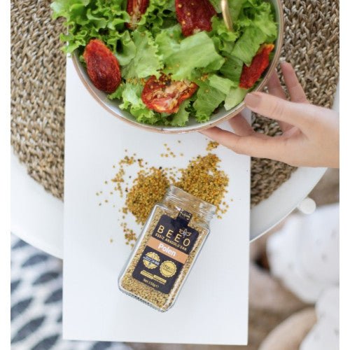 Pollen ist eine reiche natürliche Substanz, die essentielle Nährstoffe wie Proteine, Kohlenhydrate, Ballaststoffe, Mineralien und Vitamine enthält. Bee'O Pollen bietet eine wertvolle Quelle für bioaktive Verbindungen für Ihre tägliche Ernährung.