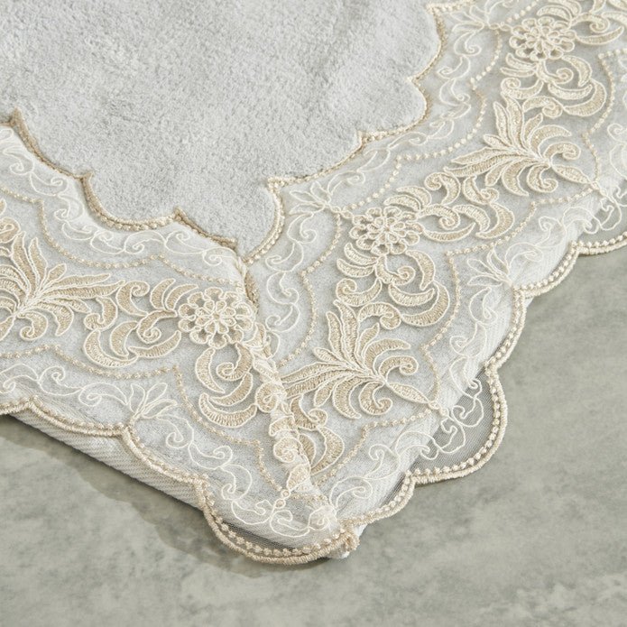 Perfekt verarbeitet zeigt das Mathilda Fußmatten-Set zarte, von französischer Spitze inspirierte Muster, die Eleganz ausstrahlen. Das filigrane Design ist meisterhaft mit dem Reichtum von Gold verwoben und schafft eine fesselnde Ästhetik, die sowohl Bewohner als auch Gäste mit Anmut willkommen heißt.